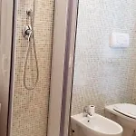 Det har et badeværelse med et bidet, separat toilet og en bruser.